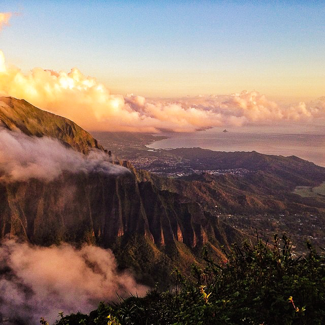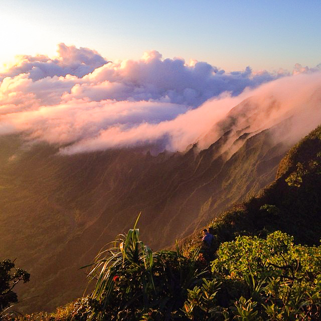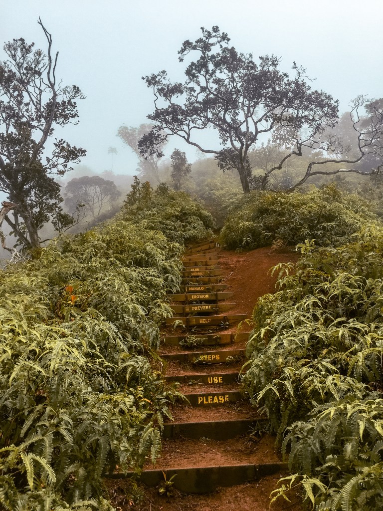 Overall, plan for it to take several hours in complete darkness just to reach the top (bring a headlamp). The hike itself is entirely vertical on metal stairs, if you have a fear of heights this one really isn’t for you. Plan for it to be completely covered in clouds (therefore wet and cold) when you get to the top while waiting for the sun to rise, so pack a change of clothes to keep you dry and warm (just trust me on this). This hike is well worth the reward, the views of Kailua/Kaneohe and the mountain ranges are second to none. After you get back to your car, head on over to Cinnamons for some red velvet pancakes, or Kono’s for a Kalua pork burrito!!