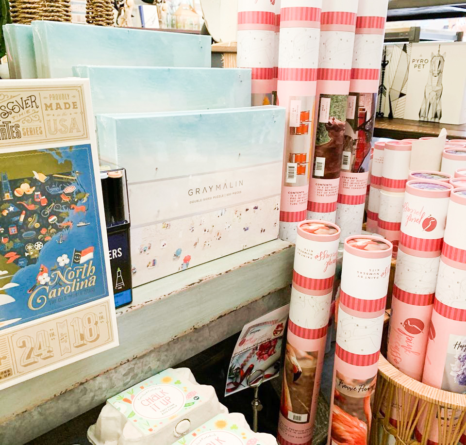 The owner of Mockingbird, Sundi McLaughlin is a proud military wife (and one of the funniest people I know) who lives and works in Southern Pines, NC where she has a lovely shop called Mockingbird located on Broad St, right in the heart of downtown. Sundi, a prior Deputy from Florida, moved to Southern Pines in 2008, and subsequently opened this adorable shop in 2009. A visit to Mockingbird is a regular habit of mine, as there are always new adorable treasures in stock, and the ladies that work there are a treat to chat with! This is also where I purchase LITERALLY every gift I have bought in the last 5 years – baby showers, weddings, birthdays, you name it. Stuck in quarantine? Try a puzzle, a book (like “Pet This F*cking Puppy – A Touch and Feel Book for Stressed Out Adults”, or a Paint by Number, Watercolor Edition.