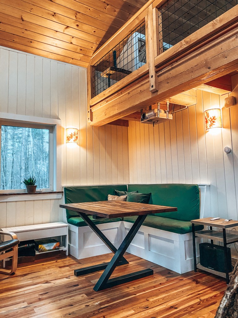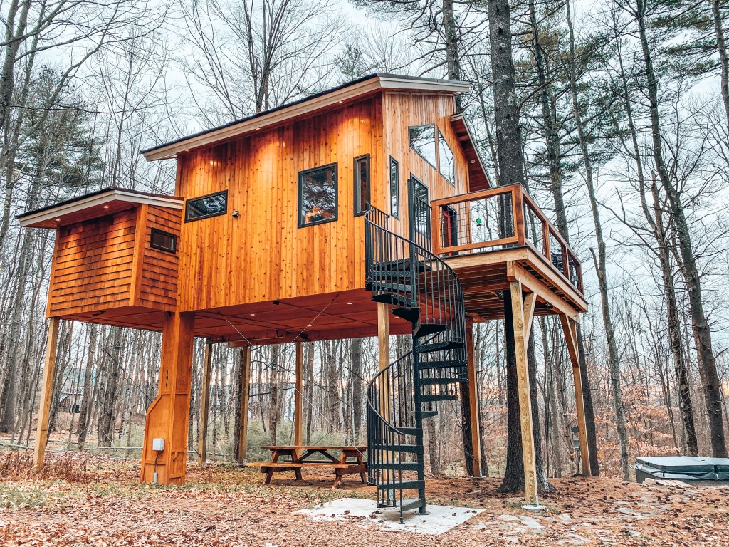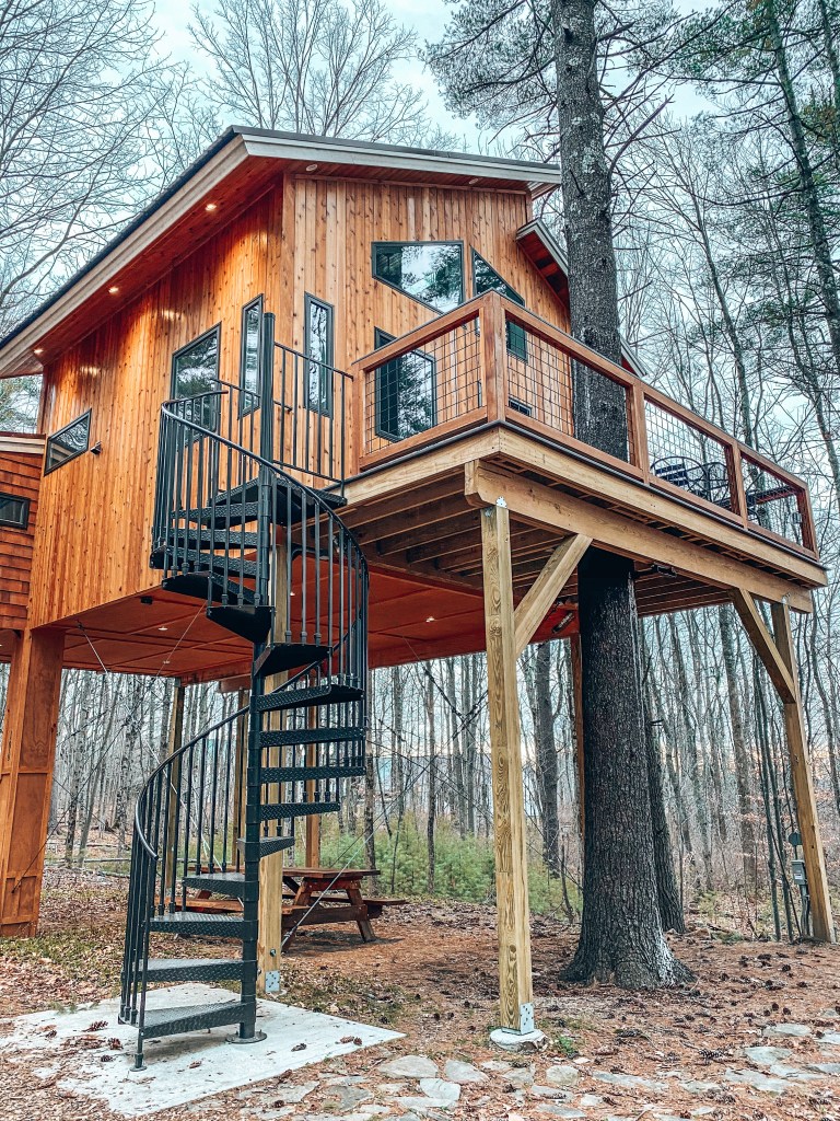 In the interest of recharging and escaping the ‘groundhog day’ scenario we have found ourselves in, my husband and I decided to take a 1-night trip to Springvale, Maine. The getaway was entirely inspired by this eco-friendly, carefully crafted, carbon neutral treehouse only 1.5 short hours away from our home.