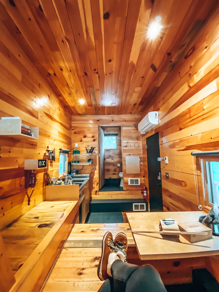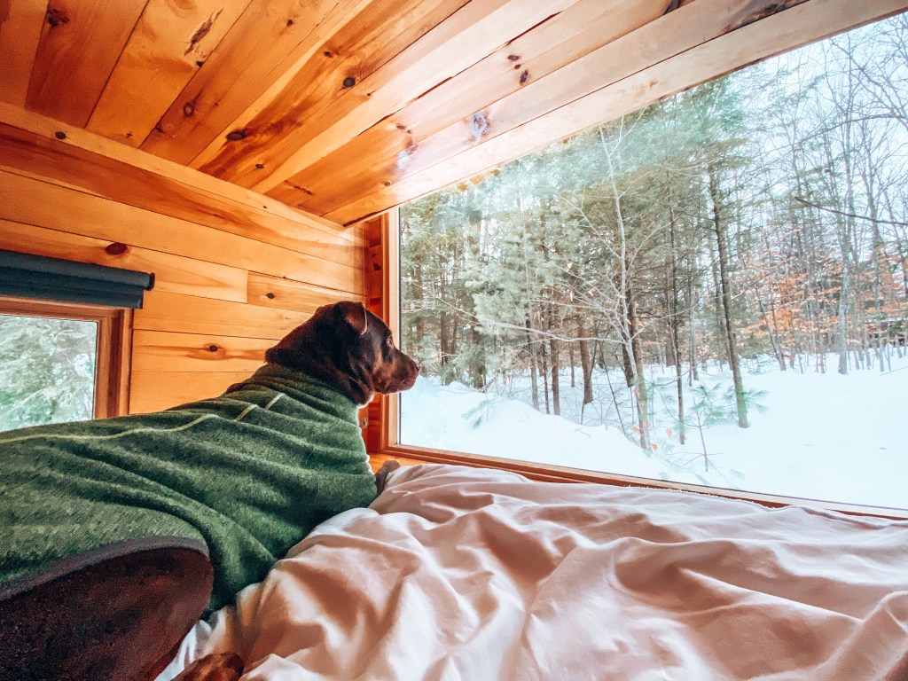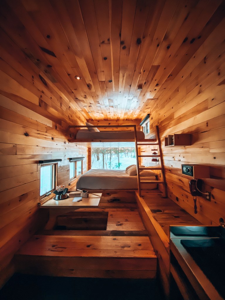 You can select a cabin with either 1 Queen Bed or 2 Queen Beds (the 2 beds are lofted). When you book, you can select 1 bed, 2 beds, or ‘any’. We selected ‘any’ because I didn’t have a preference, and ended up with the lofted bed situation. It was myself, my husband, and our two dogs, and honestly the 2 lofted beds were perfect, because we slept on the top one and our spoiled dogs slept on the bottom one.