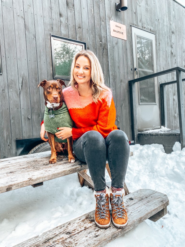 Aside from the bed set up, each cabin has a bathroom (toilet and shower), a small kitchen area with a stovetop, mini fridge, and sink, as well as a cozy dining area. We brought food to cook while we were there – making dinner and breakfast inside our cabin. An extra cute touch: Getaway had a dog bowl, treats, poop bags, and a human s’mores kit waiting for us.