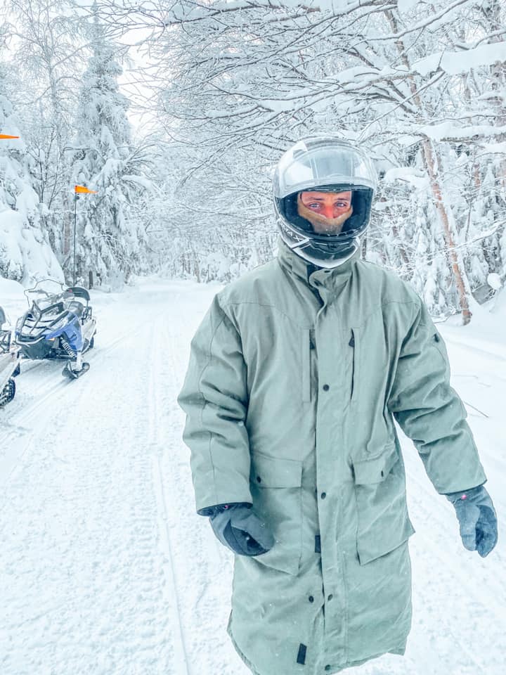 The terrain was beautiful – you really get out there and are ‘away from it all’ which I loved. It was mountainous, and very snowy. Given we were a family with varying levels of comfortability on the snowmobiles it was great having a guide – but honestly, if it were just Adam and I we would have preferred to go off on our own, as our guide kept us riding really slow and stopped so many times.