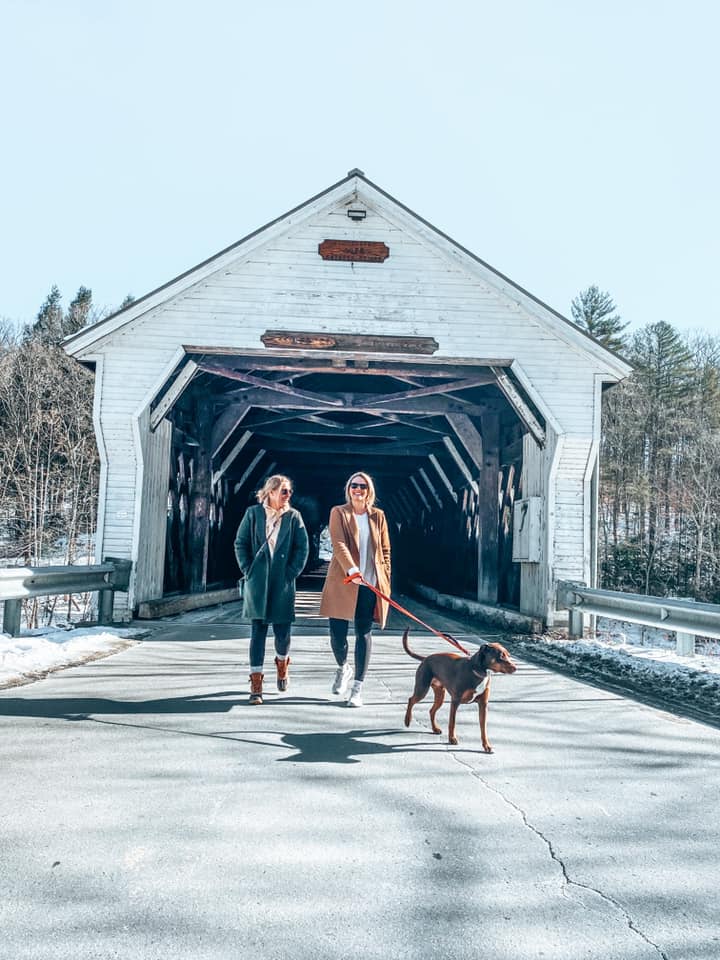 Nested in a small town in Southern Vermont, only 10 minutes away from Stratton Mountain, is the Green Mountain Modern House. This pet-friendly, unique, contemporary home was the perfect fit for our family – with enough sleeping arrangements, a big beautiful kitchen to cook all of our meals in, an outdoor fire pit for Adam to sit alone by the fire and drink beer (lol, seriously, it was too cold for everyone else), a sauna, and a large open living space for us to do yoga and pilates together in the mornings!