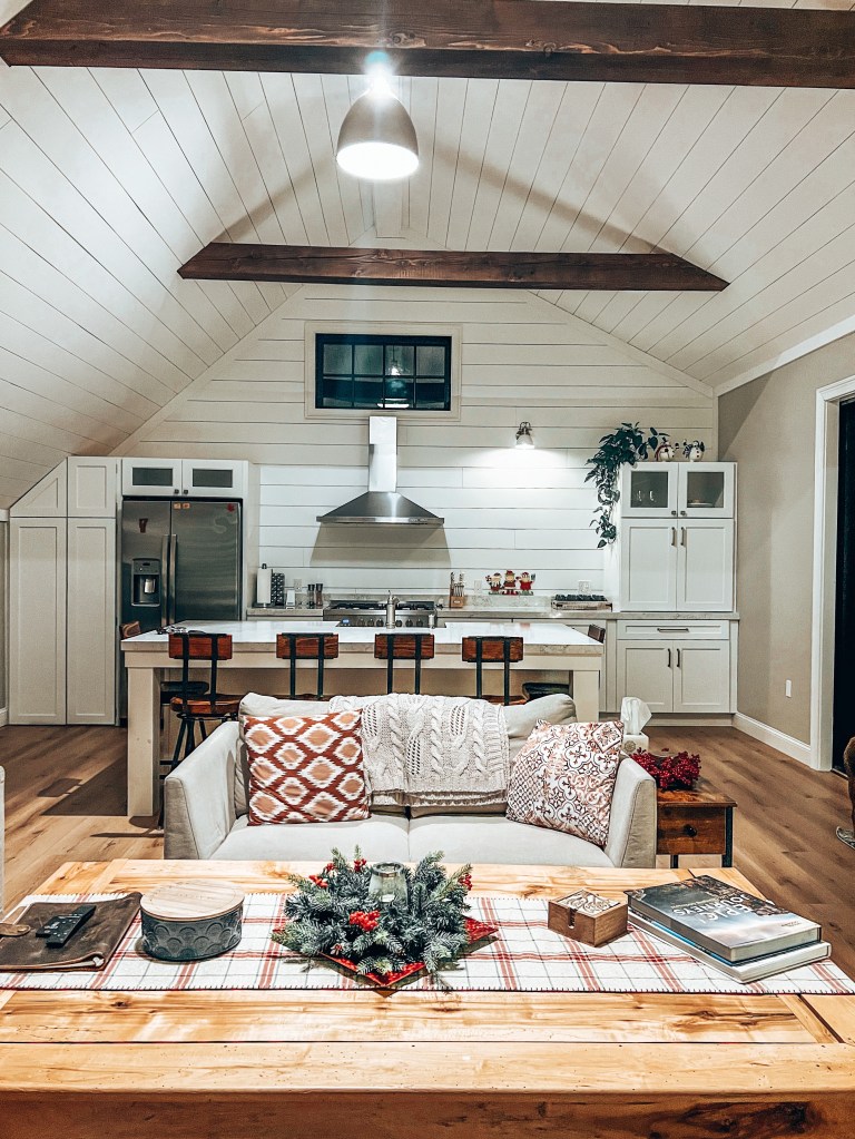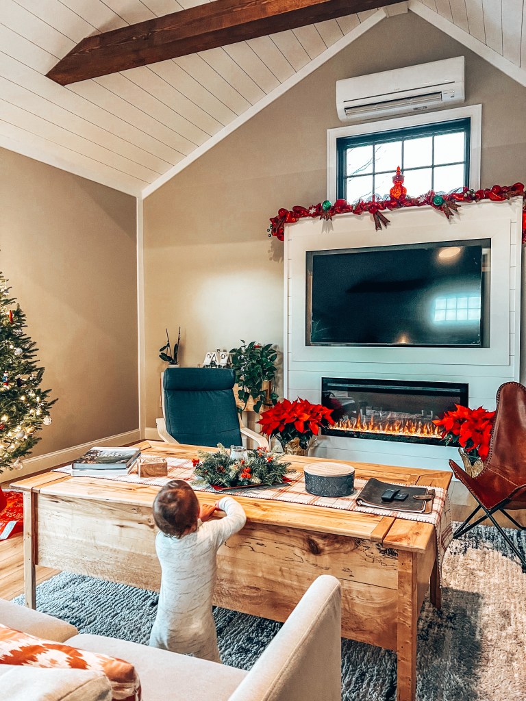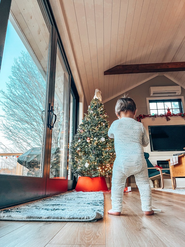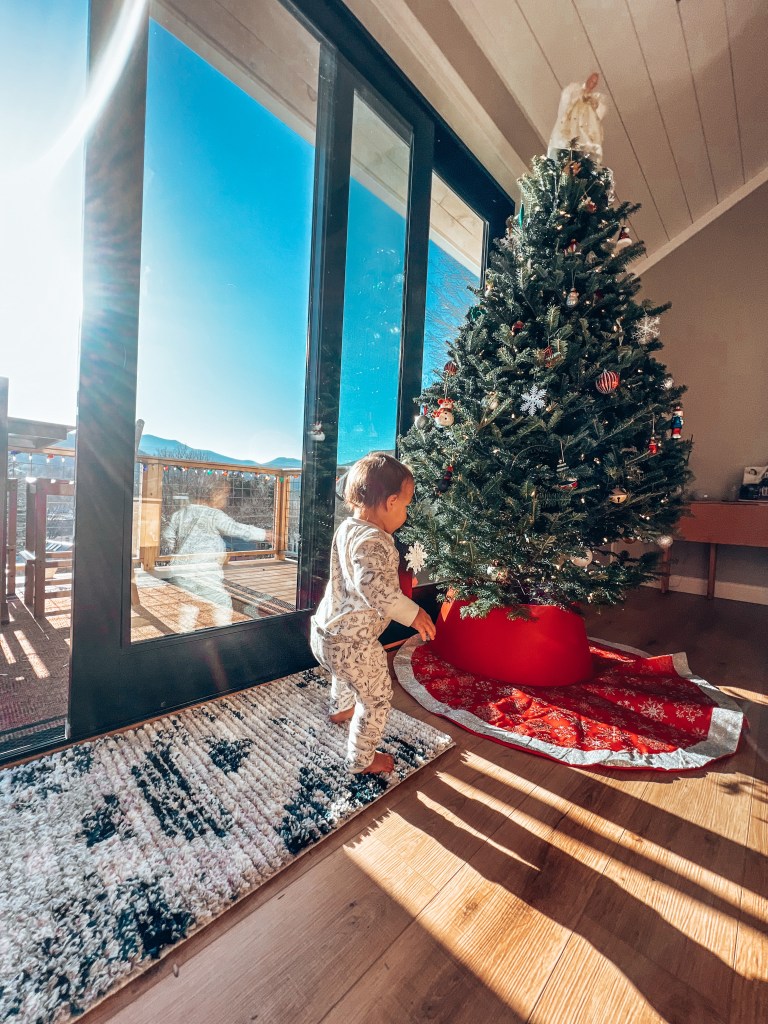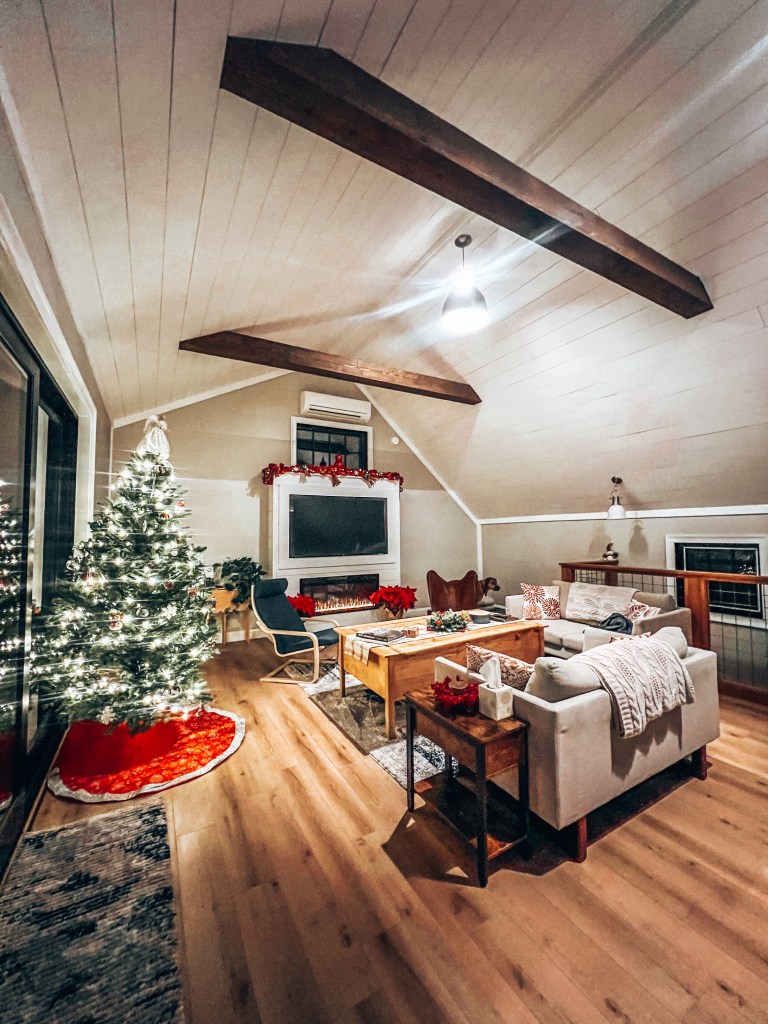 A newly renovated 1800’s barn featuring gorgeous 16 foot-wide glass sliding doors that overlook the stunning Green Mountains. The Barn has a reverse floor plan, maximizing the view from the 2nd floor living space, and allowing for quiet, comfortable and private sleeping arrangements on the first floor. The electric fireplace and Christmas dĂ©cor (including a REAL Christmas tree) made for an exceptionally cozy environment.