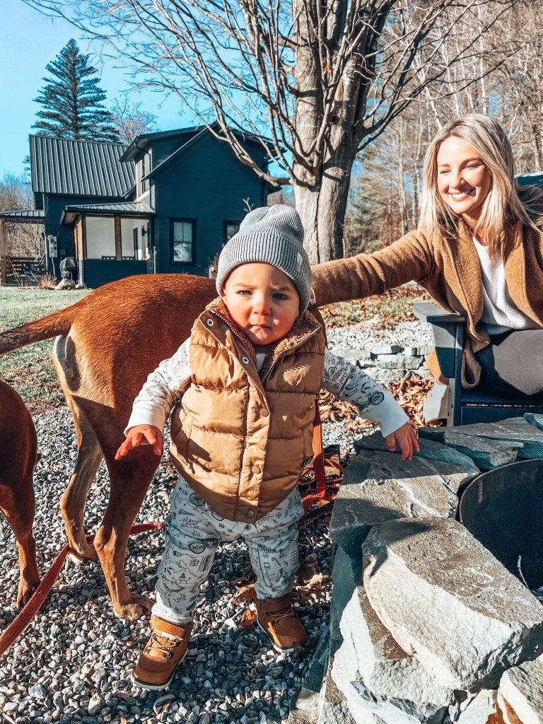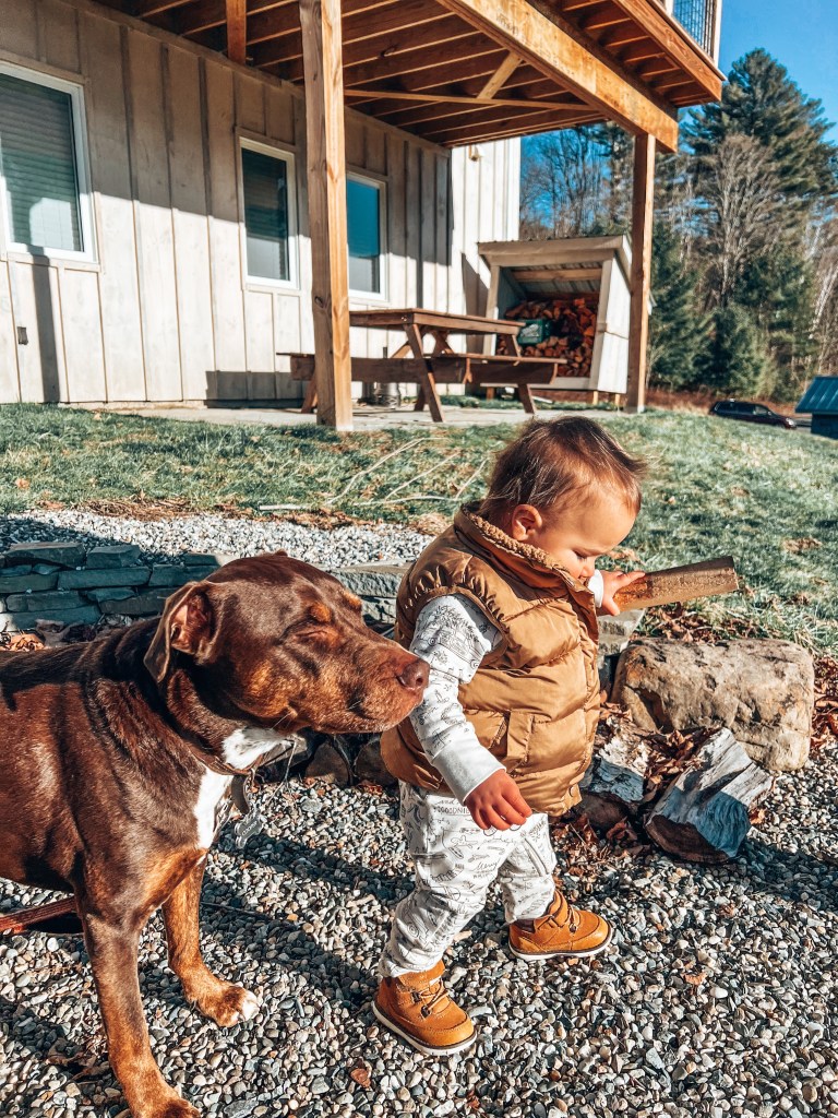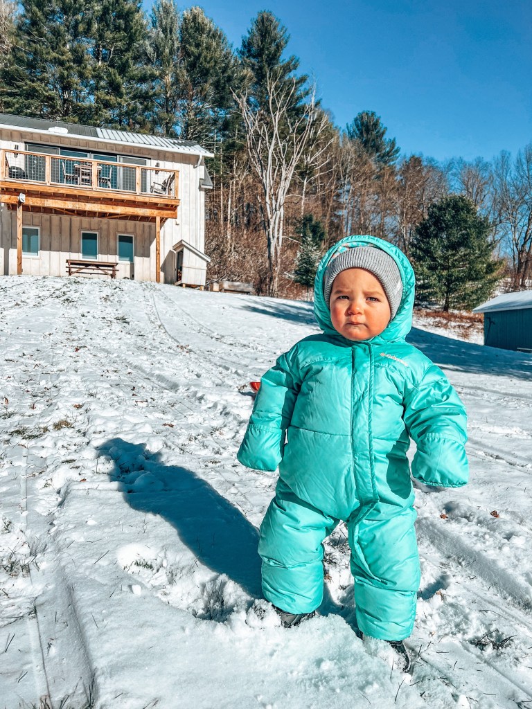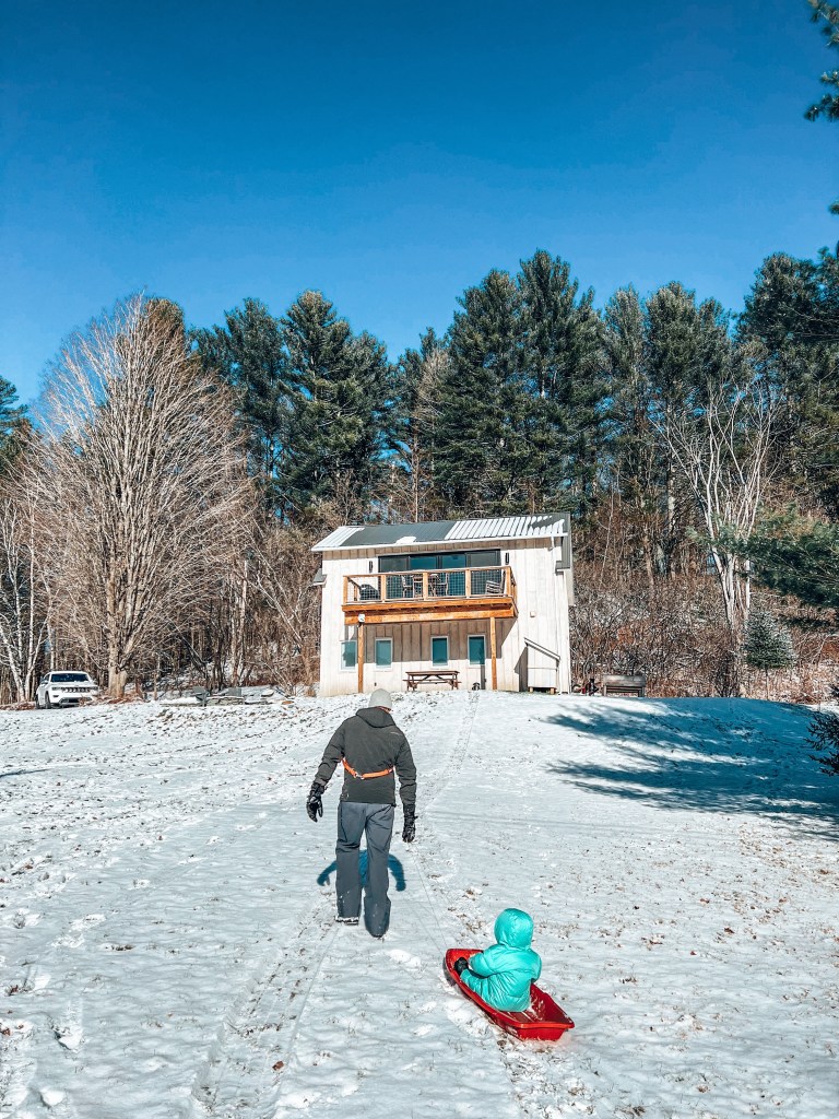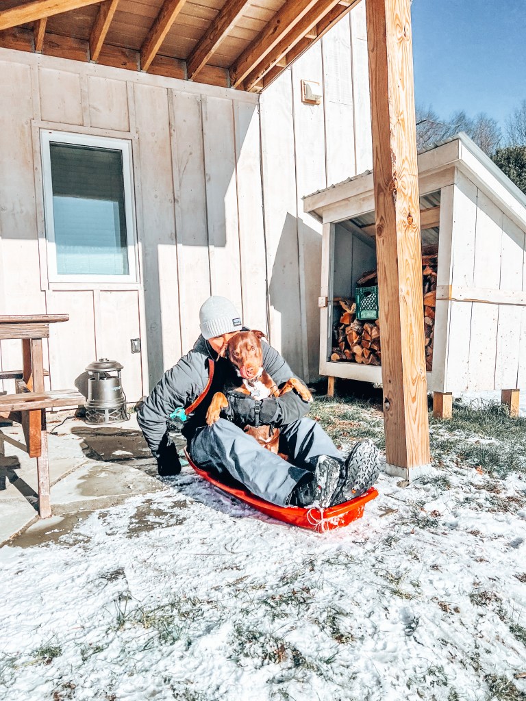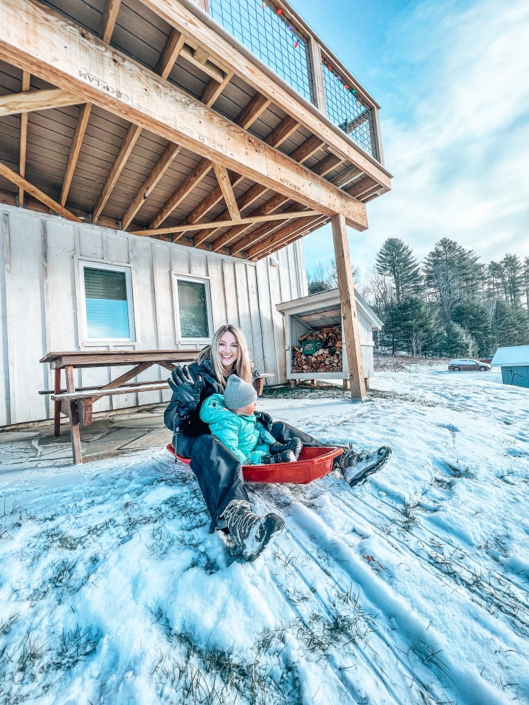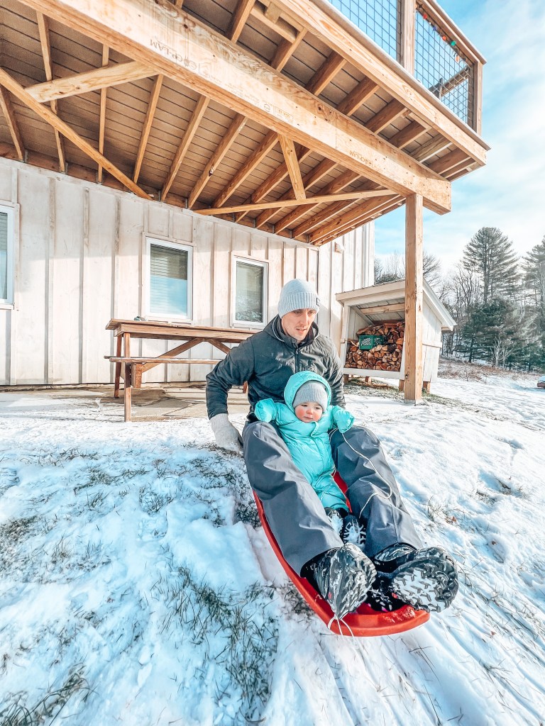 Our last day in Vermont brought fresh SNOW! It was only a couple of inches but that didn’t stop us from using the big hill and open green space in the back of the house to sled! While Ash saw snow last year as a 2 month old, this was a very new experience for him and we had a TON of fun sledding down the hill over and over and over again. Even the dogs got in on the action!
