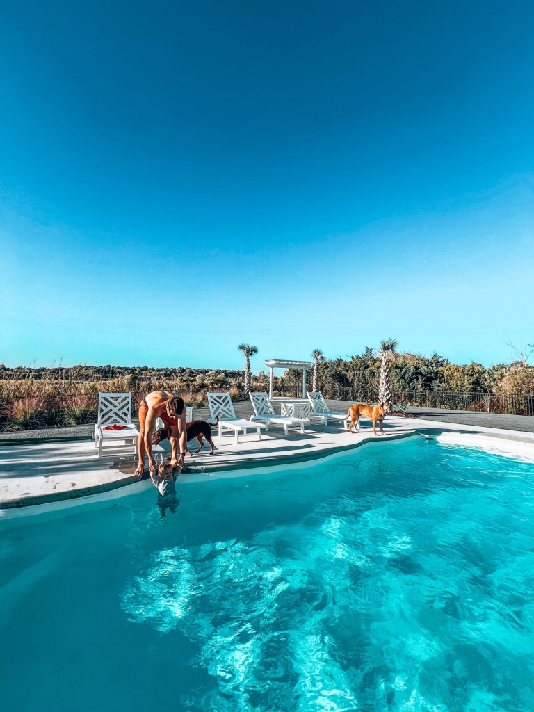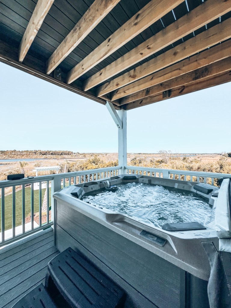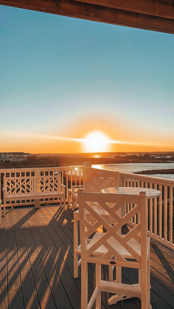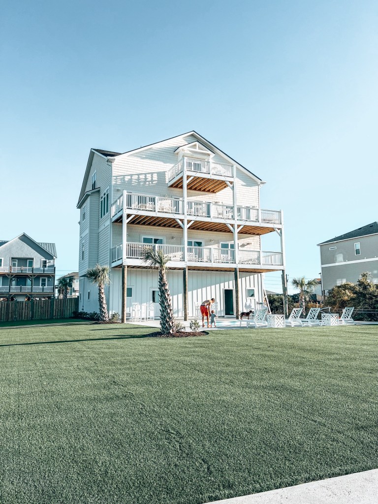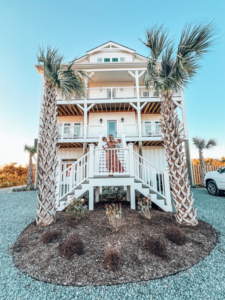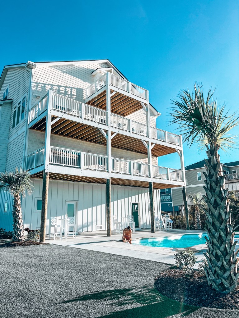 Oh boy do I have a good one for you!!!! Last month we had the absolute pleasure of staying at Sea Haven, a 12 bedroom 11.5 bath and pet-friendly home in North Topsail, North Carolina. This waterfront home sleeps 28 people comfortably, and comes with a host of luxuries. A pool, hot-tub, elevator, panoramic views of the sound from each level, located steps from the beach, and to top it off … it double as an event venue!