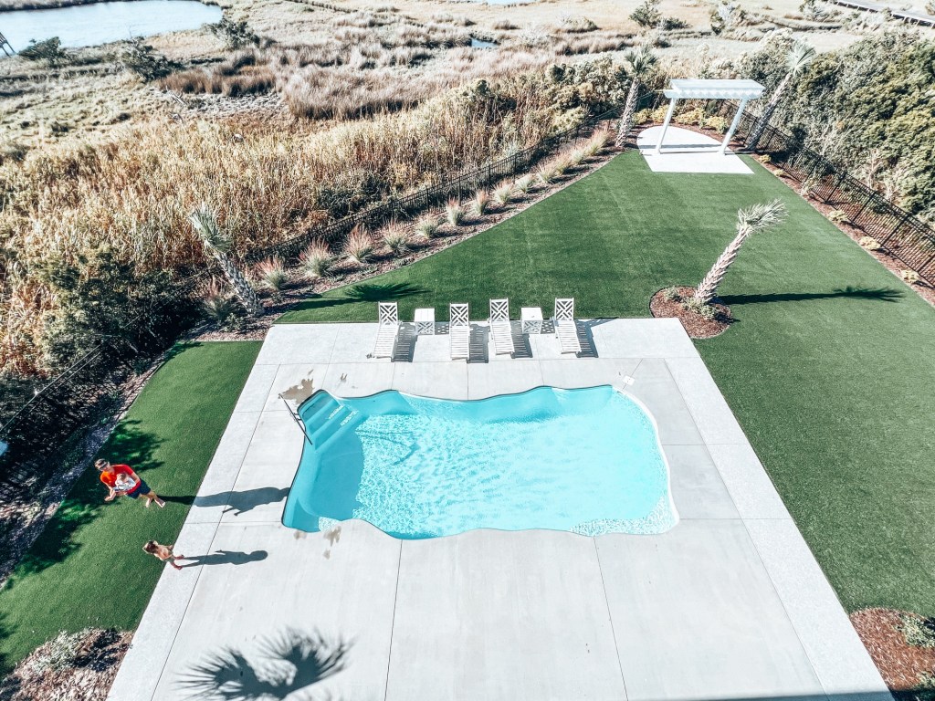 The entire first floor is a dedicated event space, with a bar and large dining area(s) that open up to the pool and back yard – the perfect space to create the event of your dreams. As you can see from the photos below, the back yard includes a large green space with a stunningly picturesque wedding arch – also, you have the sound as your backdrop which is so peaceful. Transform the space into a wedding, vow renewal or anniversary celebration, birthday party, brand party, work party, or bachelorette party! There are so many possibilities when you can book a home that doubles as an event-venue.